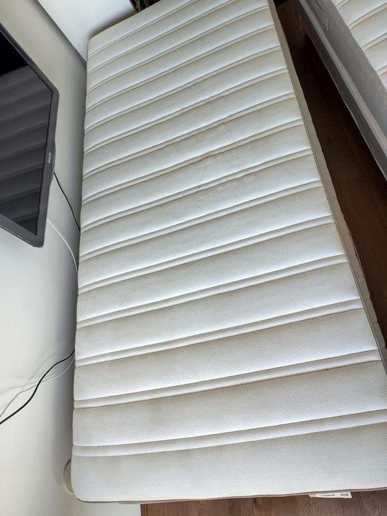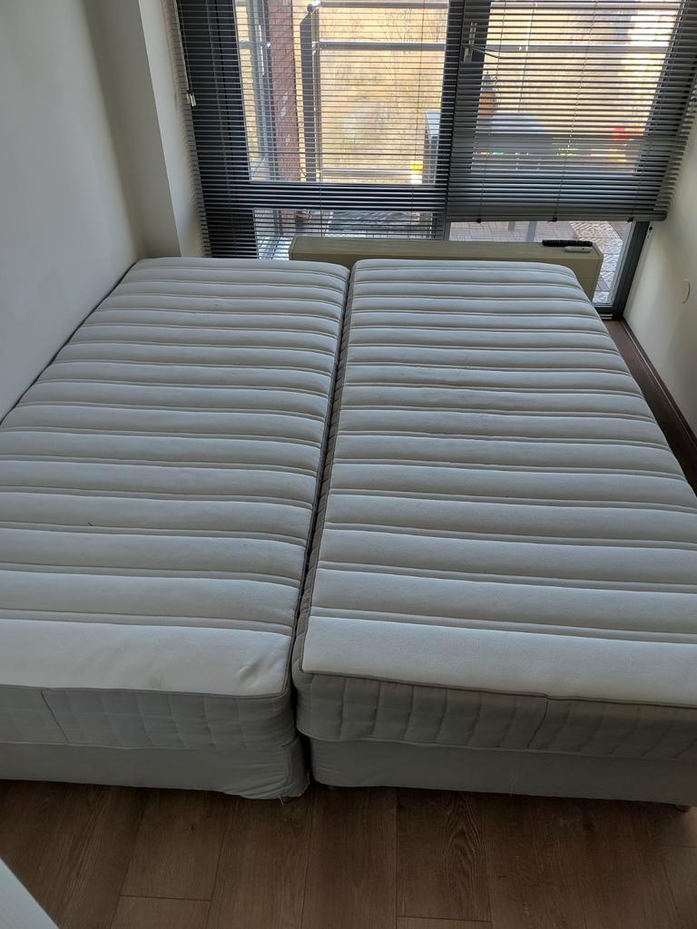 Complete ikea espevar boxspring combinatie bestaande uit een boxspring (180x200 cm) en twee hamarvik matrassen. De set is gebruikt