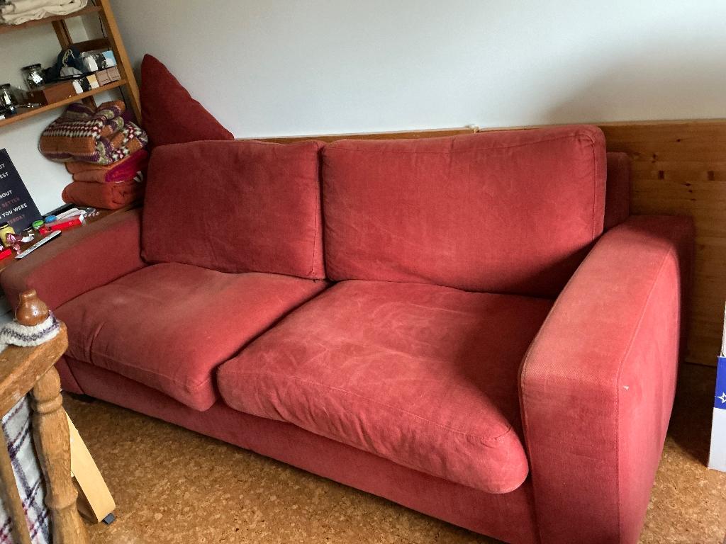 Mooie 3 persoons bank met losse kussens. Lengte: 220 diep: 95 zithoogte: 48 totale hoogte: 87 gratis af te halen.