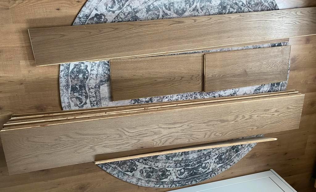 Dit opgelegde eiken klik laminaat mag zo snel mogelijk gehaald. Wel vandaag. De volgende planken zijn het: 10 x 190x26, + 1 x 125x