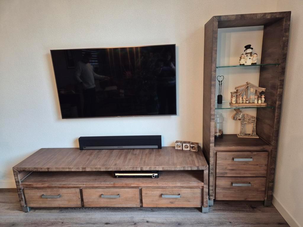 Tv meubel met 3 lades en een (boeken)kast met 2 lades van het merk henders & hazel. Afmetingen tv meubel: 1.80 M breed 45 cm d