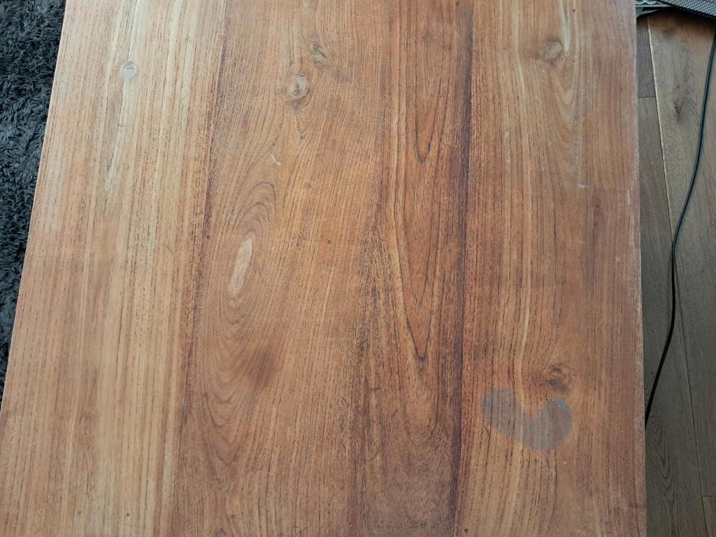 Zware massieve salontafel. Op blad zit wel een vlekje. Afmeting: 80x80cm. Hoog 45cm.