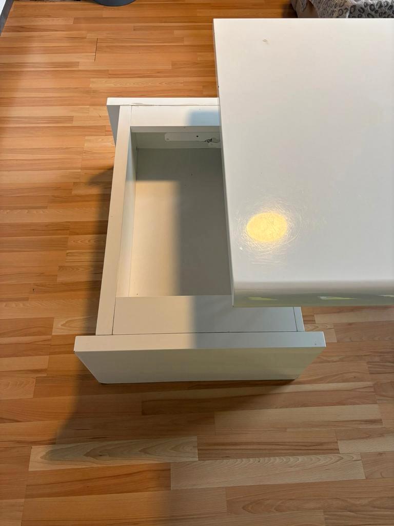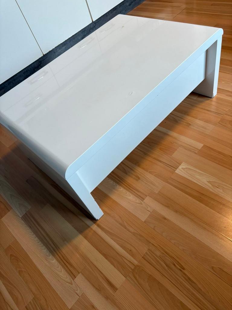 Stijlvolle witte salontafel. Ideaal voor de woonkamer. De tafel is gebruikt, maar in goede staat. Afmetingen zijn geschat op ongev