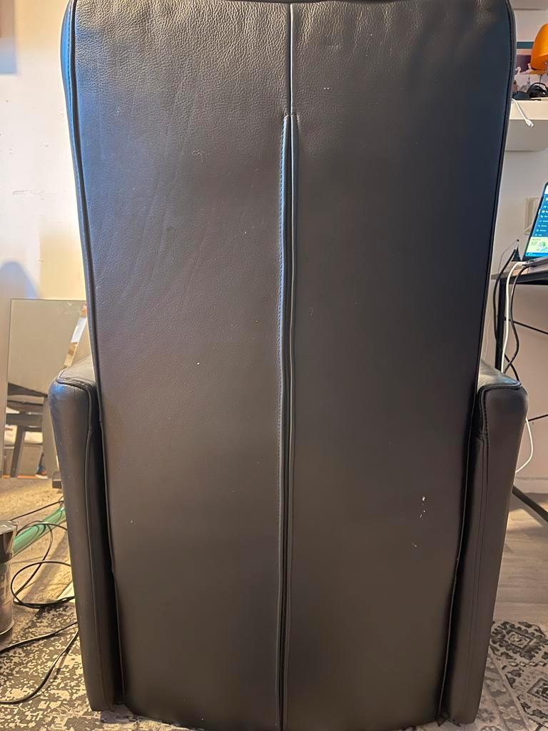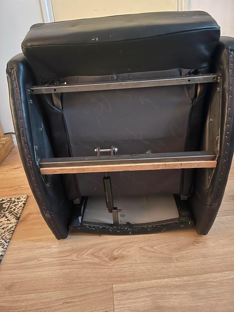 Gratis af te halen: leren stoel. Het leer is nog in perfecte staat. De onderkant van de stoel moet gerepareerd worden en de poten