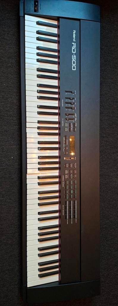 Defecte roland rd500 : met netsnoer, statief en sustainer. Helaas gaat de roland niet meer aan en zijn een viertal toetsen (te zie