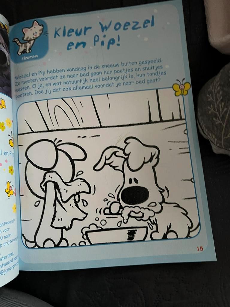 Het zijn 3 magazines in 1: op een paar pagina’s na is alles gemaakt. Wie iemand die nog wilt kleuren en de verhalen wilt voorlezen