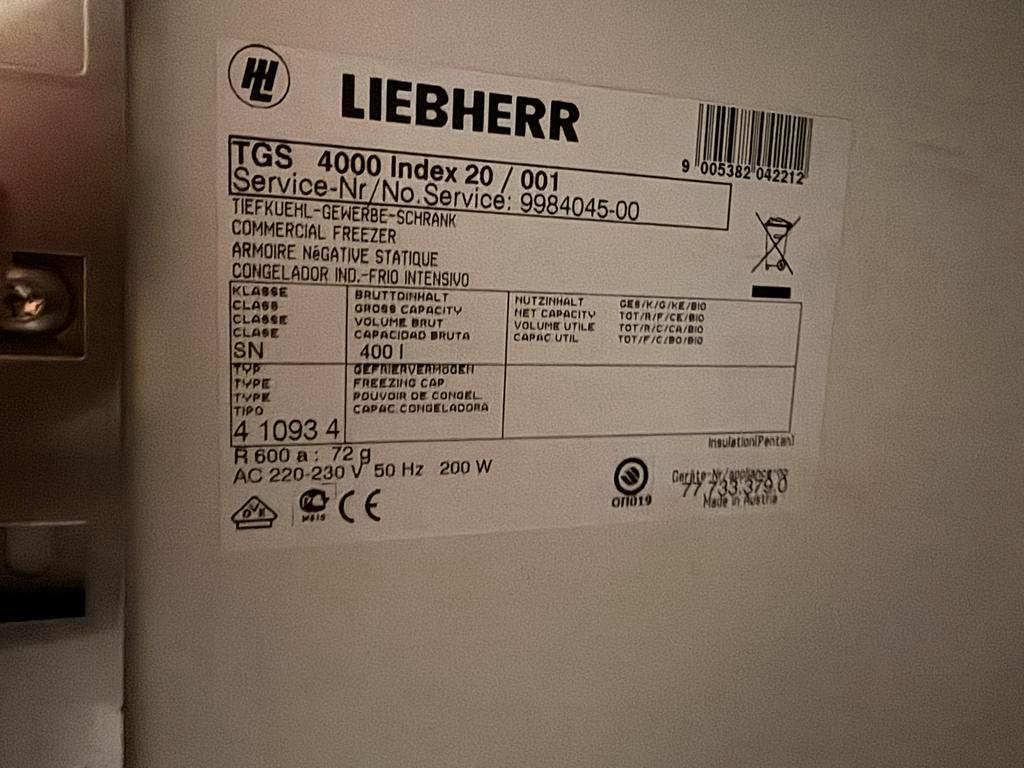 Hele grote koelkat gebruikte liebherr profi line koelkast met roosters. Ideaal voor professioneel gebruik. De koelkast is in gebru
