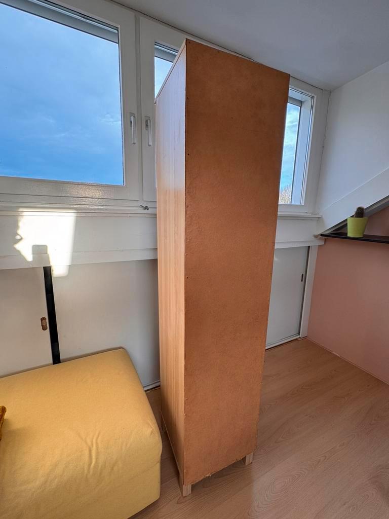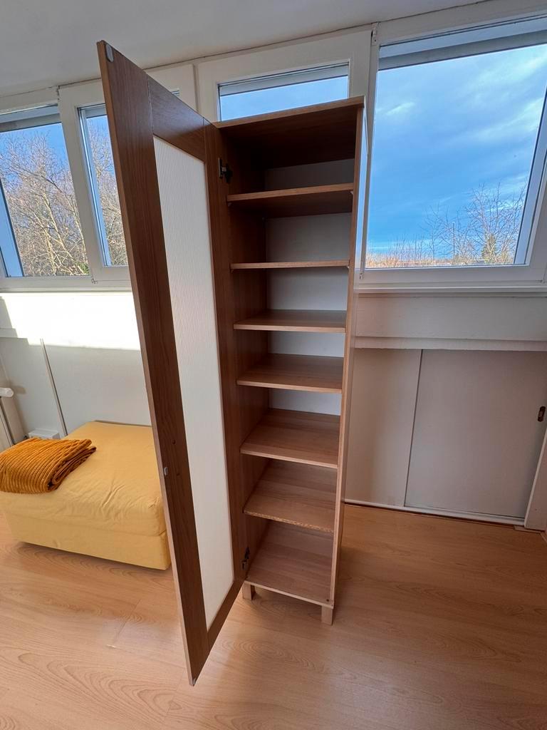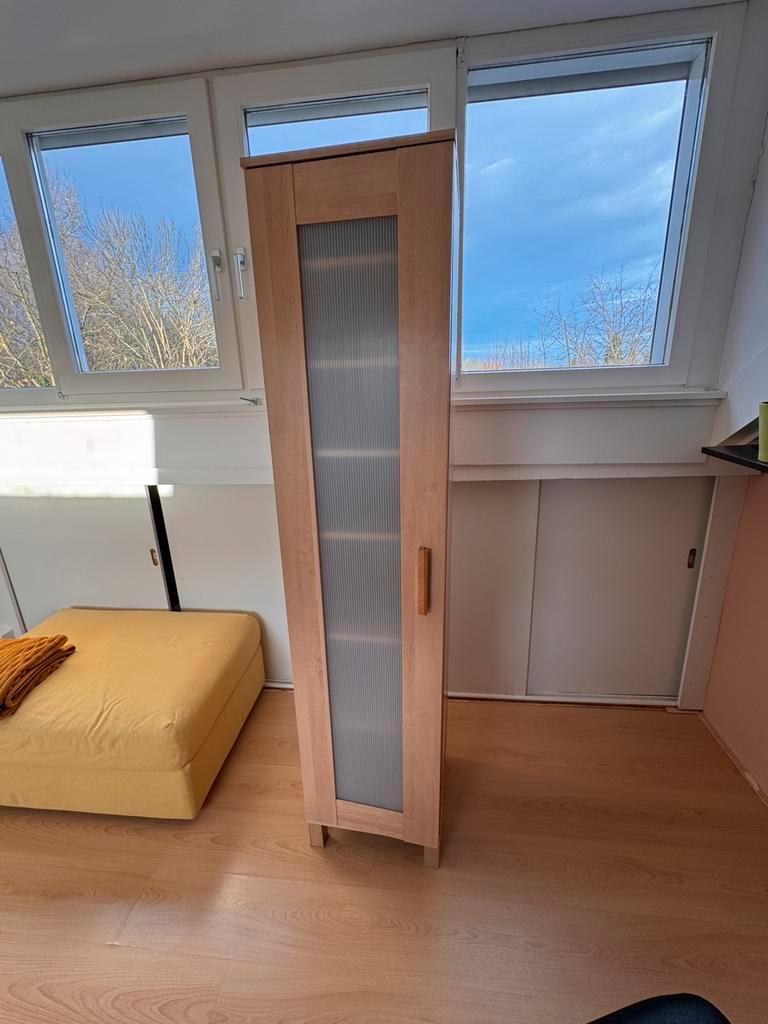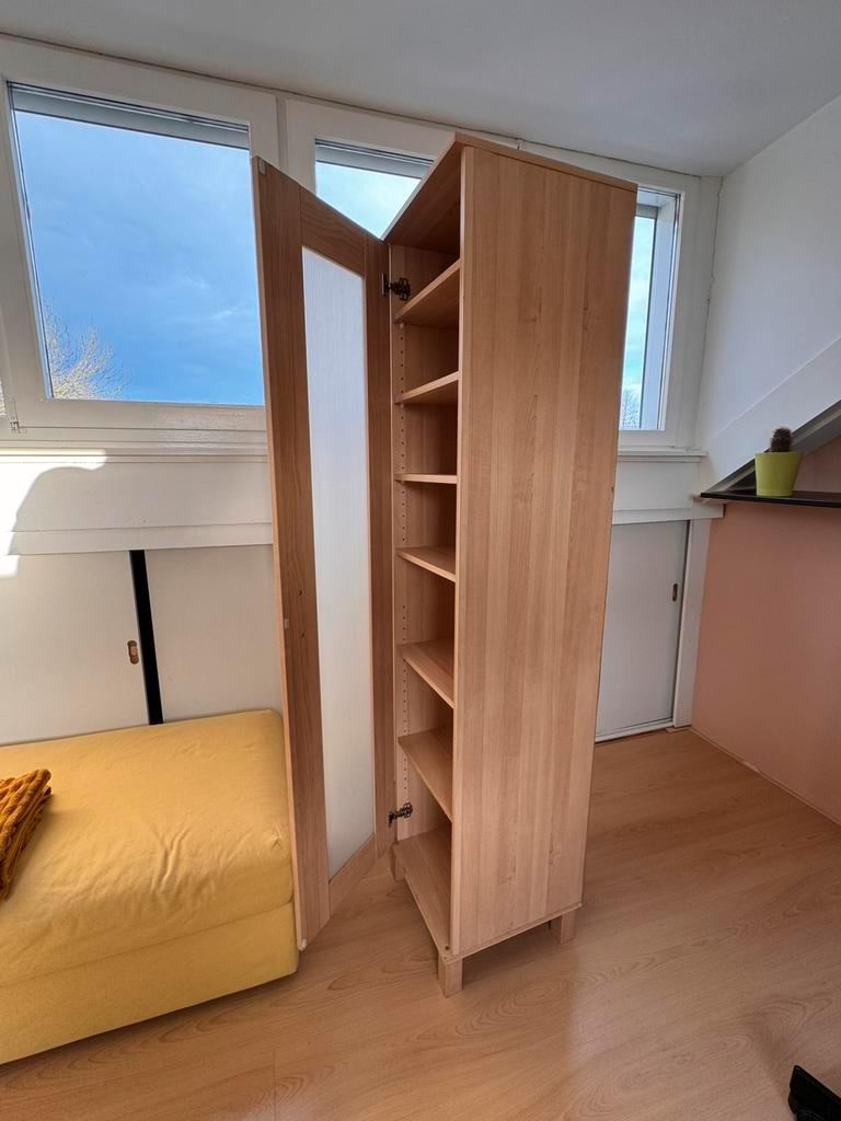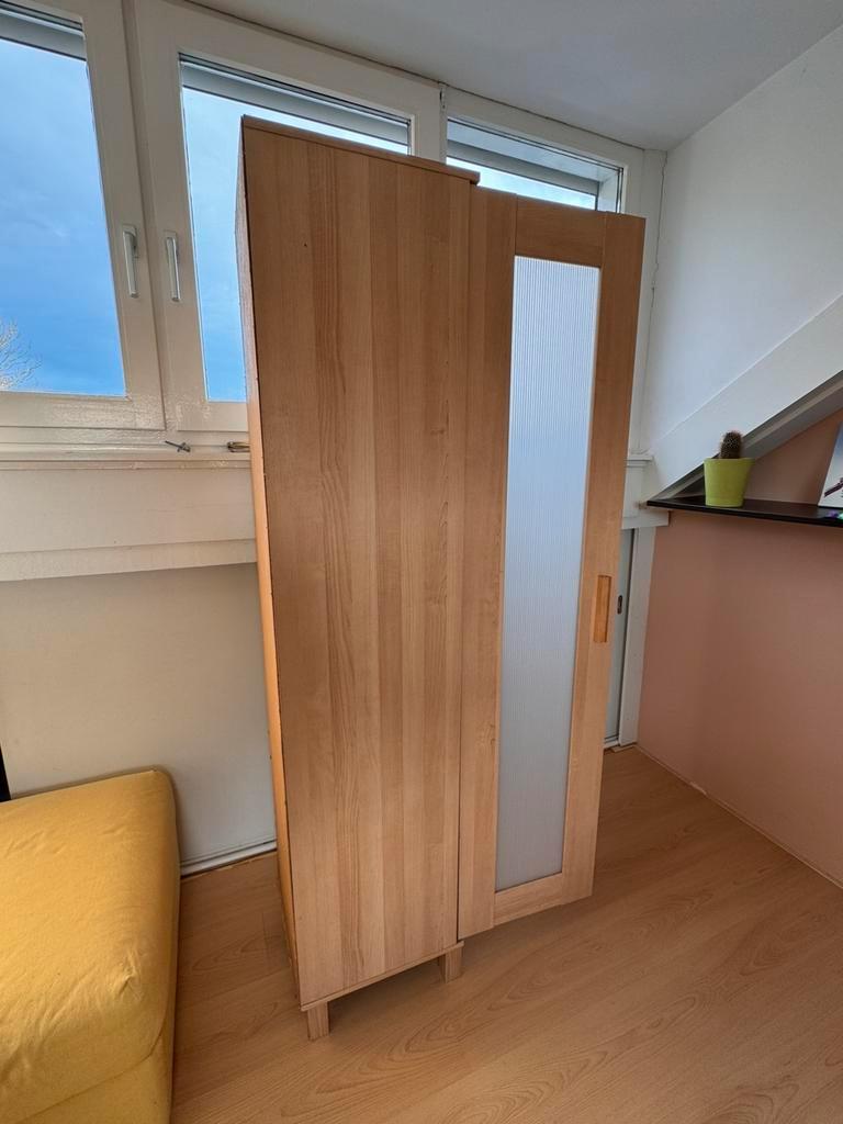 Wardrobe in natural wood color ready to help keep your clothes or small things organized. The wardrobe is 180cm height x 40cm widt