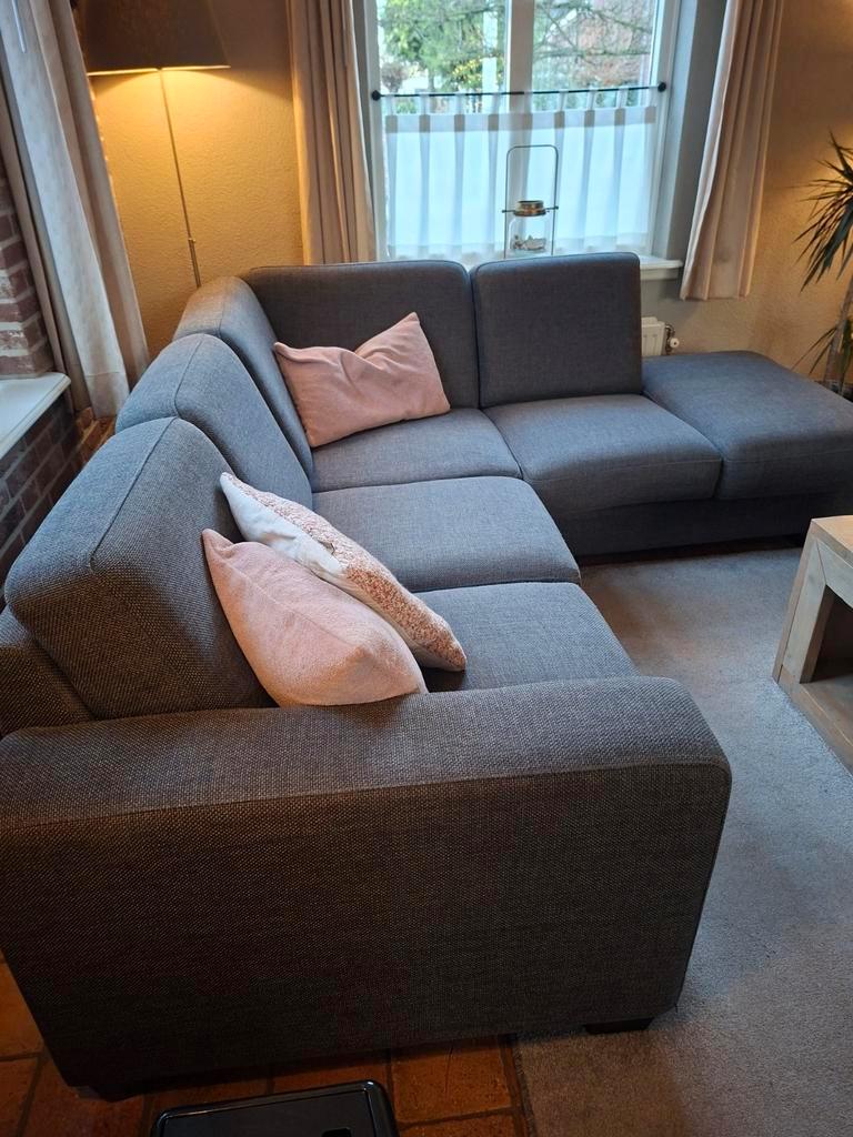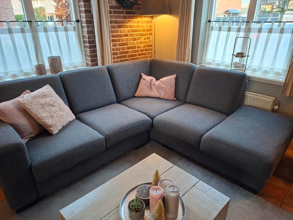 Hoekbank gratis afhalen afmeting 2.30 Bij 2.10 Hoogte rugleuning 80 cm op 1 plek onderkant lijken de veren wat los. Bank komt van