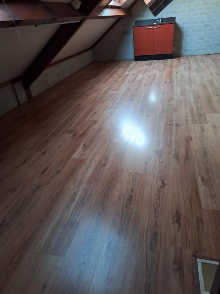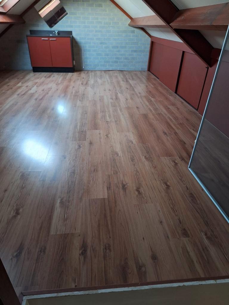 45 m2 laminaat met ondervloer groene zachtboard tevens schuifwand/knieschot van 7 mtr