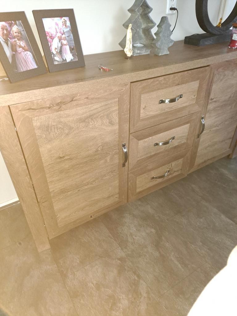 Mooie dressoir met afmetingen 165 cm breed, 40 cm diep en 85 cm hoog. Ideaal voor extra opbergruimte in de woonkamer of eetkamer.