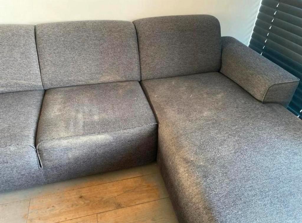 Oude hoekbank van ongeveer 10 jaar oud afkomstig van de pronto.. De bank heeft wat vlekken, maar is verder nog in goede staat. Ide