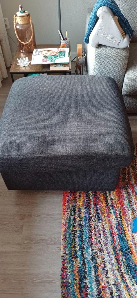 Grijze stoffen hocker/poef, in goede staat. Ideaal als voetenbank of extra zitplaats. Afmetingen 70x70 cm.