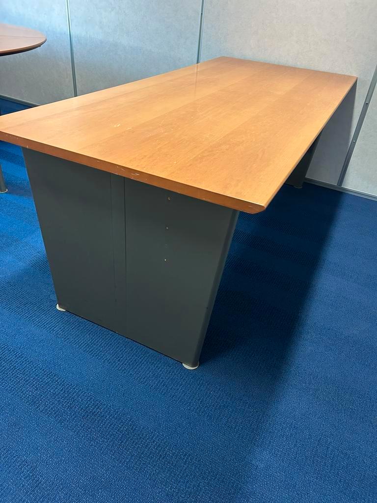Mooie vergadertafel met een afmeting van 200x90 cm. Ideaal voor vergaderingen of als grote bureau. Stevig en in goede staat.