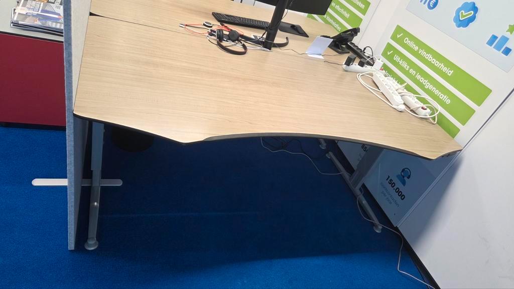 Gratis bureaus. Bij voorkeur in 1x meenemen. 2 Elektrisch verstelbare bureaus (bruin blad) 180b x 90d hoogte min 62 max 82 1 sta z