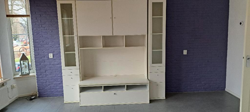 Wand- tv kast (breedte ongeveer 160-180cm) gratis af te halen. Kast is in 3 delen vitrinekasten staan los. Svp graag alleen reager