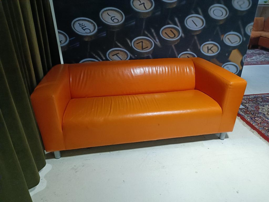 Leuke oranje tweezits bank. Kan nog prima een ronde mee. 1.75 Breed gratis ophalen in leeuwarden