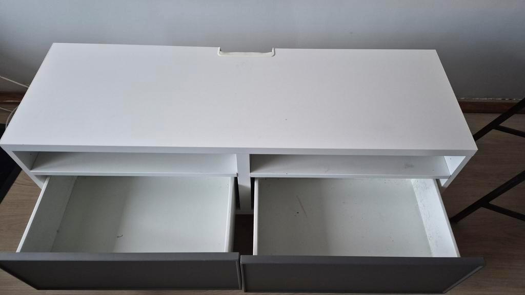 Een nette tv meubel met twee lades. Ideaal voor het opbergen van spullen en het plaatsen van een tv.