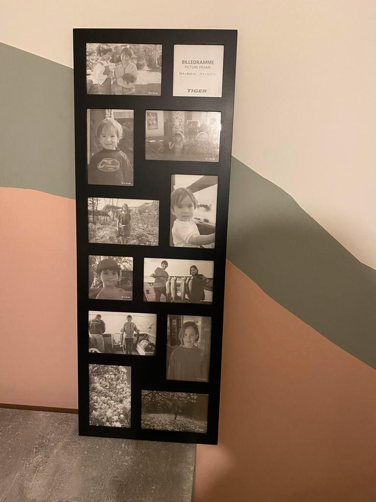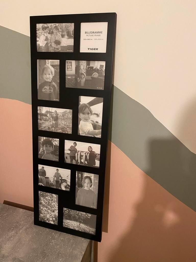 Mooie zwarte fotolijst voor het inlijsten van meerdere foto''s. De lijst is in goede staat en biedt ruimte aan diverse formaten