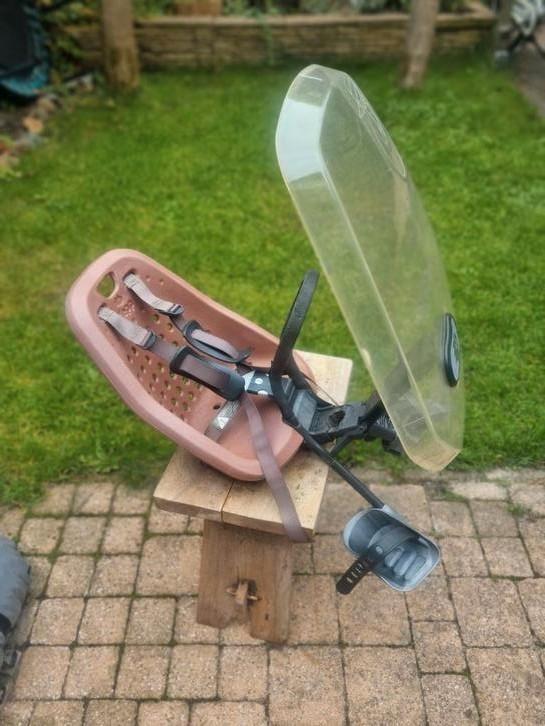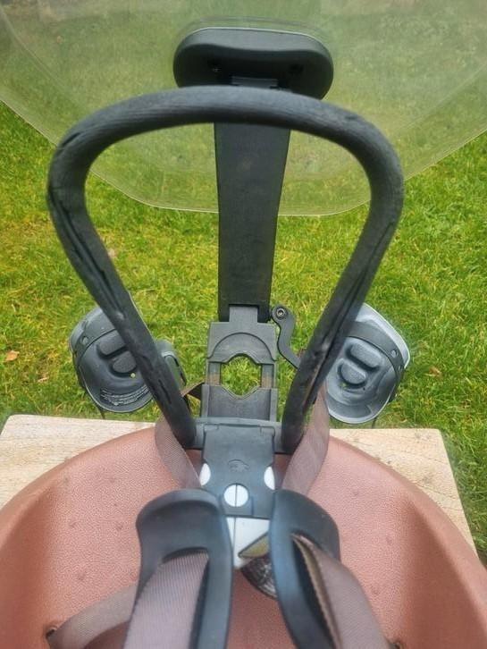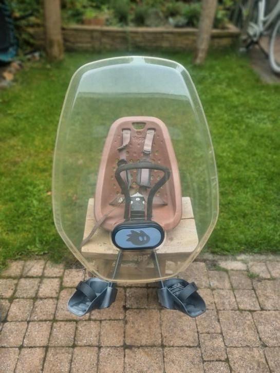 Fietsstoeltje yepp met windscherm, stuurbevestiging voor max 15kg afneembaar en sleuteltjes erbij gebruikt en altijd buiten gestaa