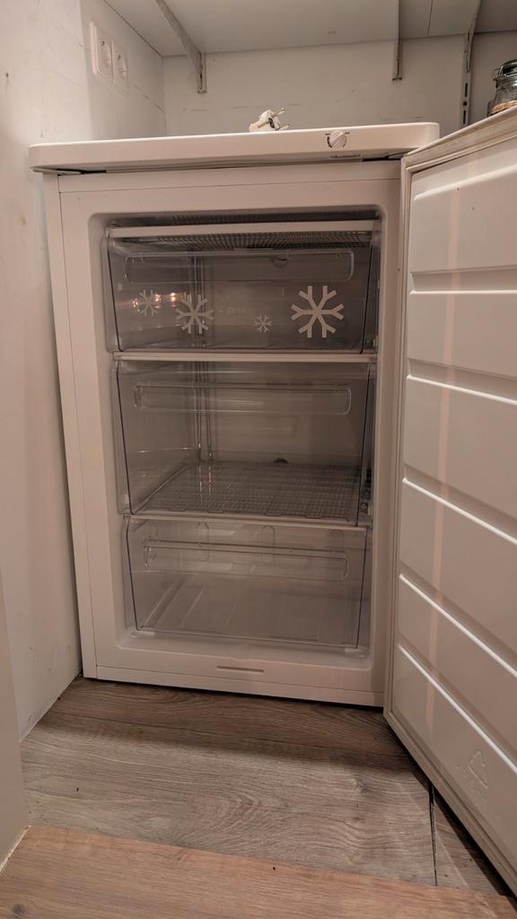 Vriezer die nog prima mee kan. Deurrubber is niet helemaal meer intact (zie foto). Gaat weg omdat we in t nieuwe huis een inbouwvr