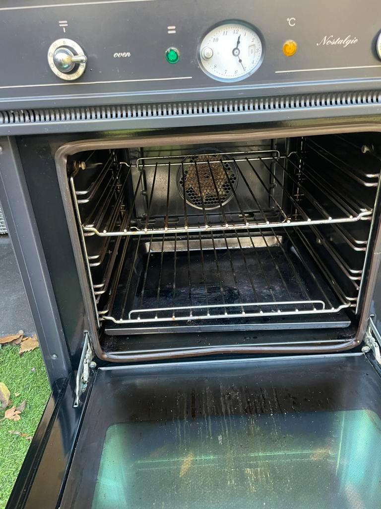 Boretti nostalgie elektrische inbouw hete lucht oven. Omlijsting maat 59,5 x 59,5 (standaard inbouw maat) werkt nog prima verlicht