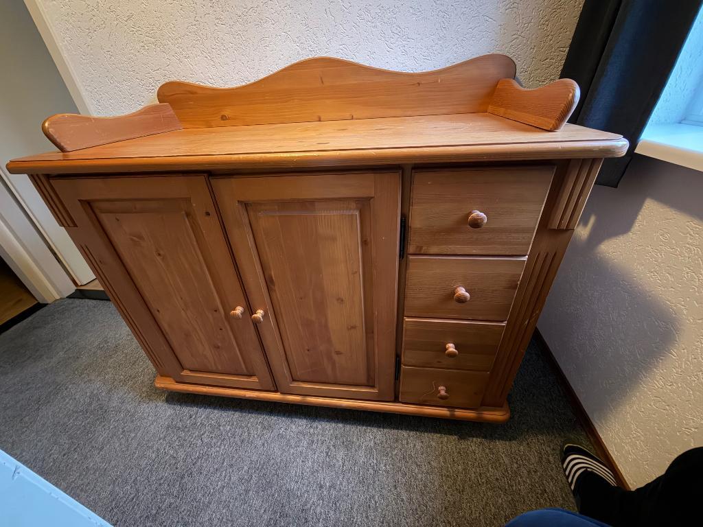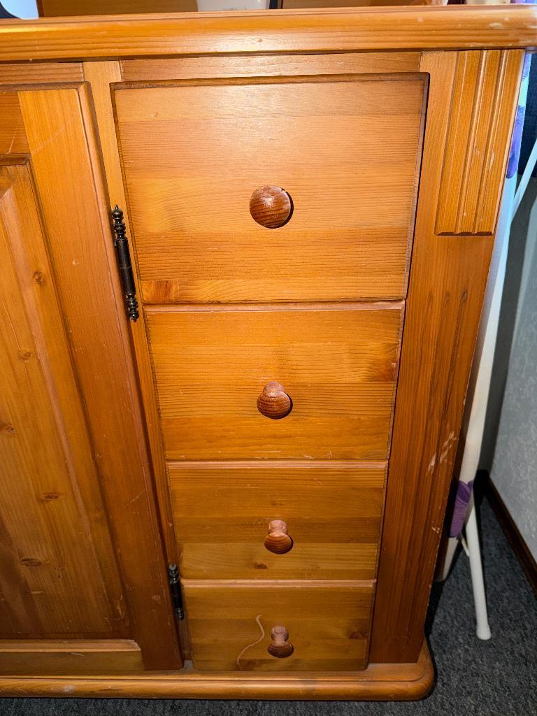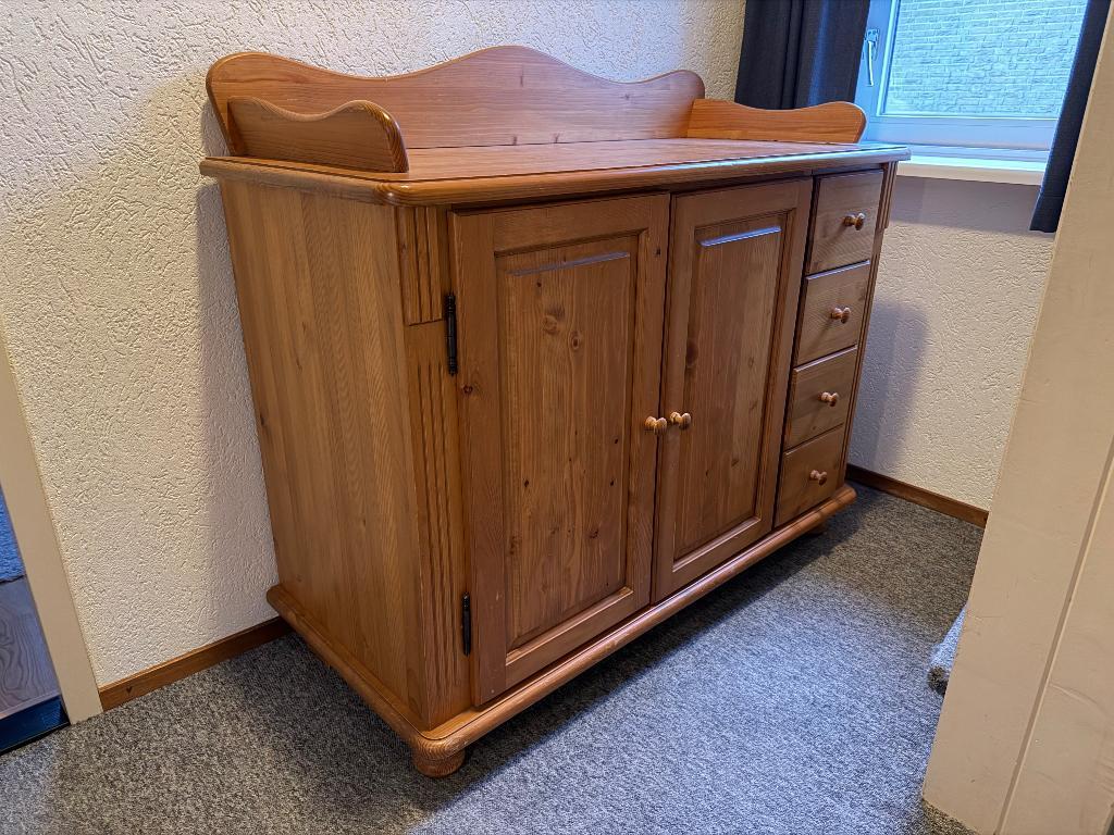 Gratis af te halen (duiven - gld) grenen houten kast. Afmeting 91 x 124 x 55,5 cm (hxbxd). De bovenste sierrand is los (d.m.v. Deu