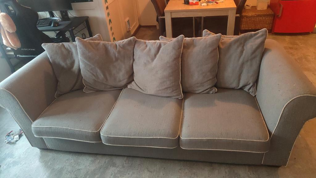 Aangeboden: een comfortabele 3-zits bank. De bank is voorzien van afneembare kussens, wat het schoonmaken en onderhouden vereenvou