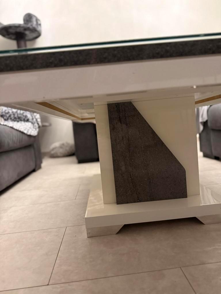 Eettafel + 6 stoelen en salontafel met glas erop kan voor zeer weinig worden opgehaald. Zijn gebruikt maar kan zeker nog een ronde