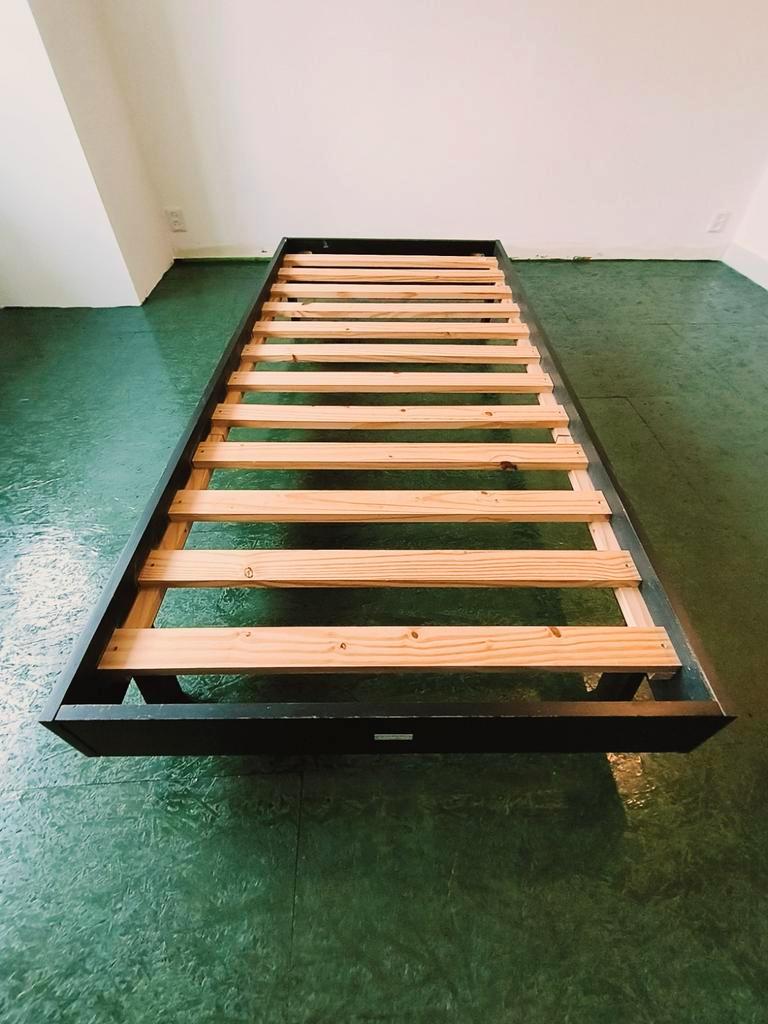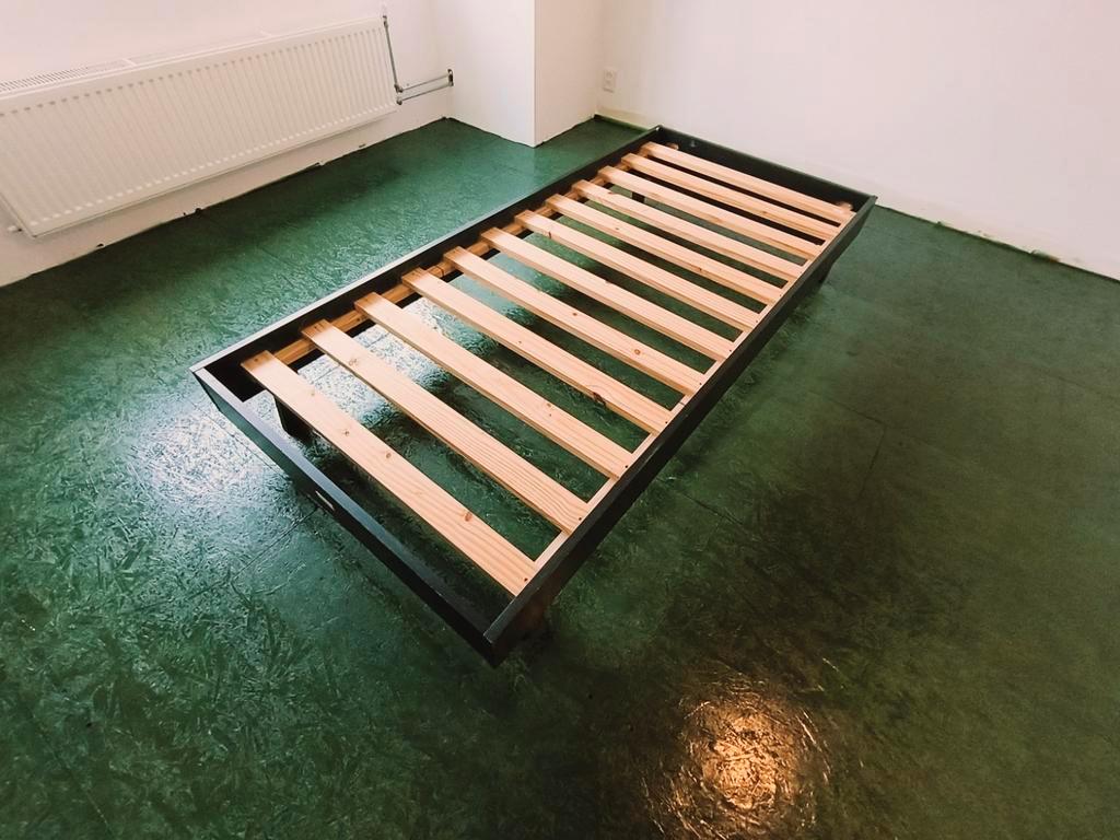 Wij hebben een bedframe over, matrasmaat 90x200 cm. Merk coming.