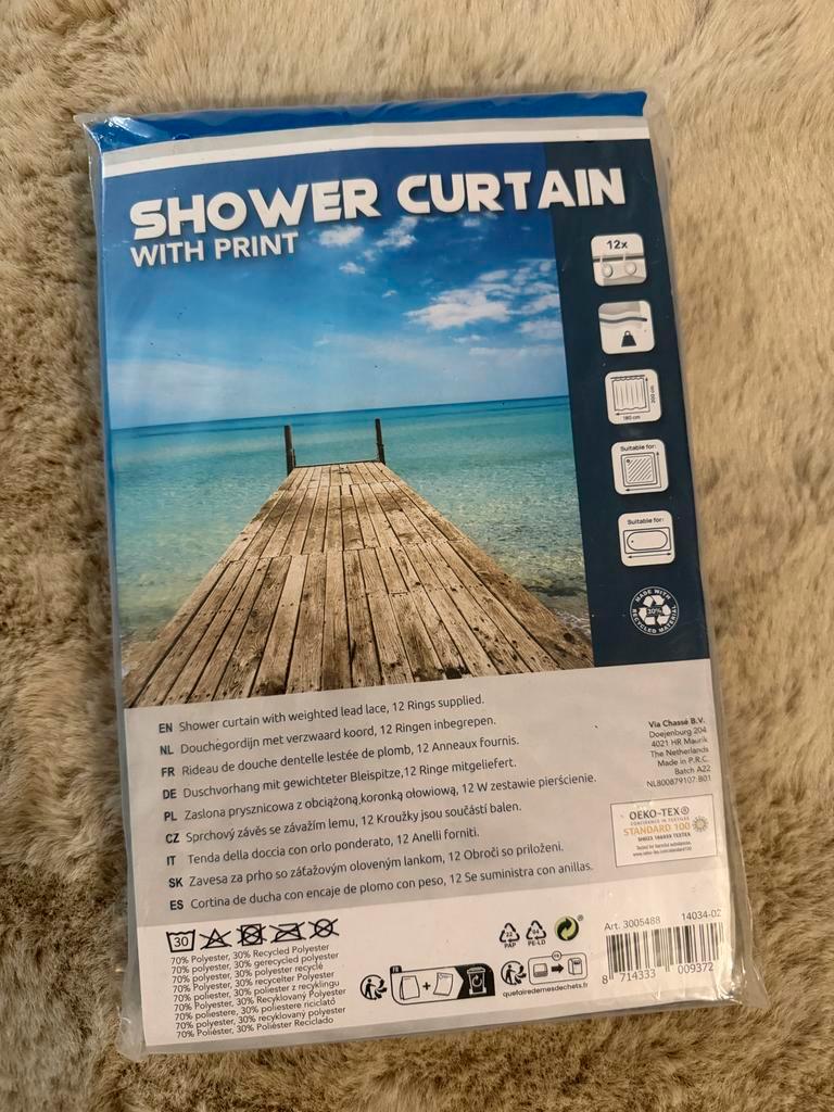 Nieuwe douchegordijn, nooit gebruikt, nog in de originele verpakking.