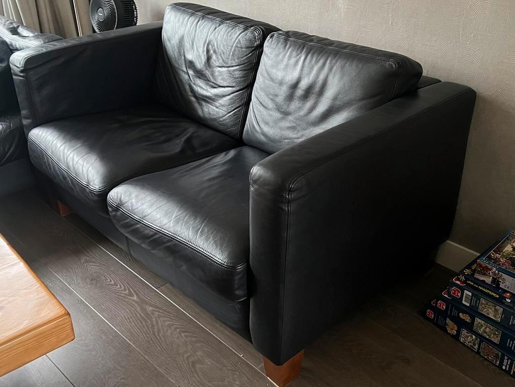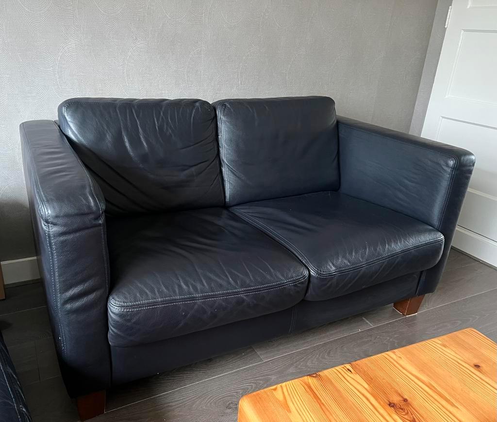 Mooie lederen 2 zits bankstel donker blauw i v m aanschaf nieuwe bank afmetingen 145 breed ca 96 diep en leuning is ca 70 hoog gra
