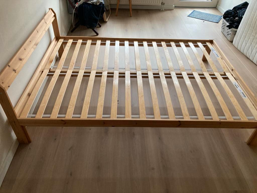 Gebruikt ikea bed ‘neiden’, afmeting 140x200 cm. Het bed is gedemonteerd en komt met lattenbodem. Ideaal als je een extra bed nodi