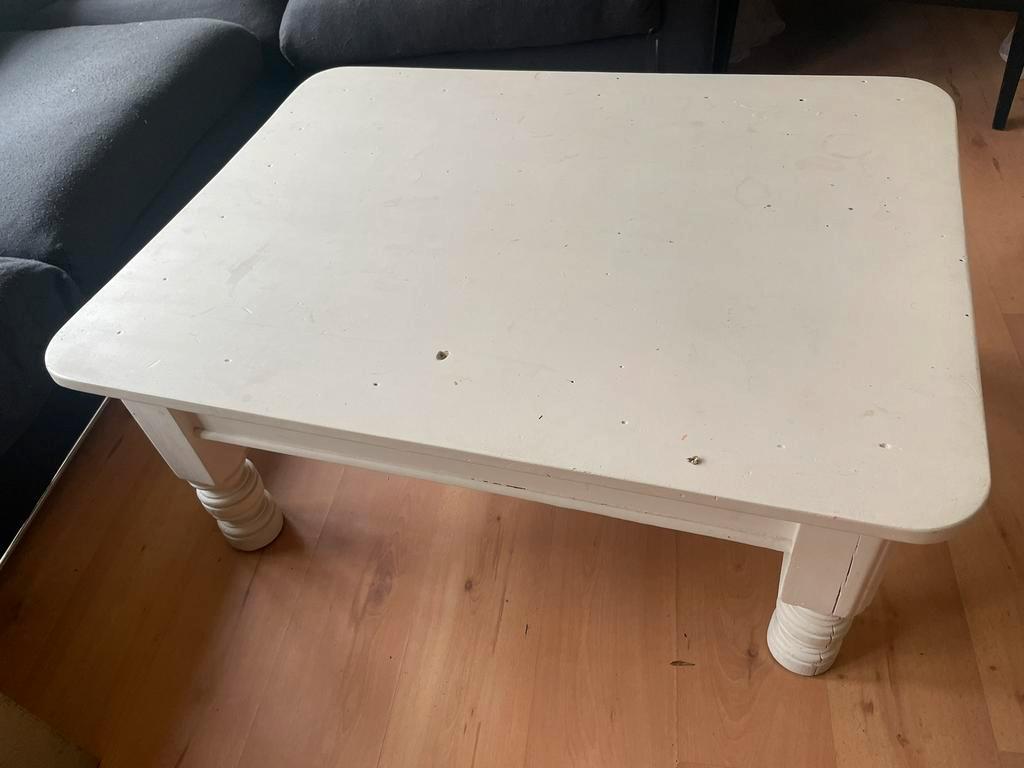White spacious wooden living room table with small drawer. Perfect for a nice and big living room. Pickup in nijmegen centrum. 108
