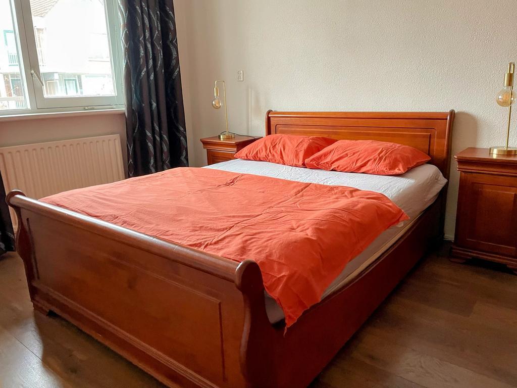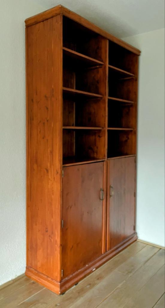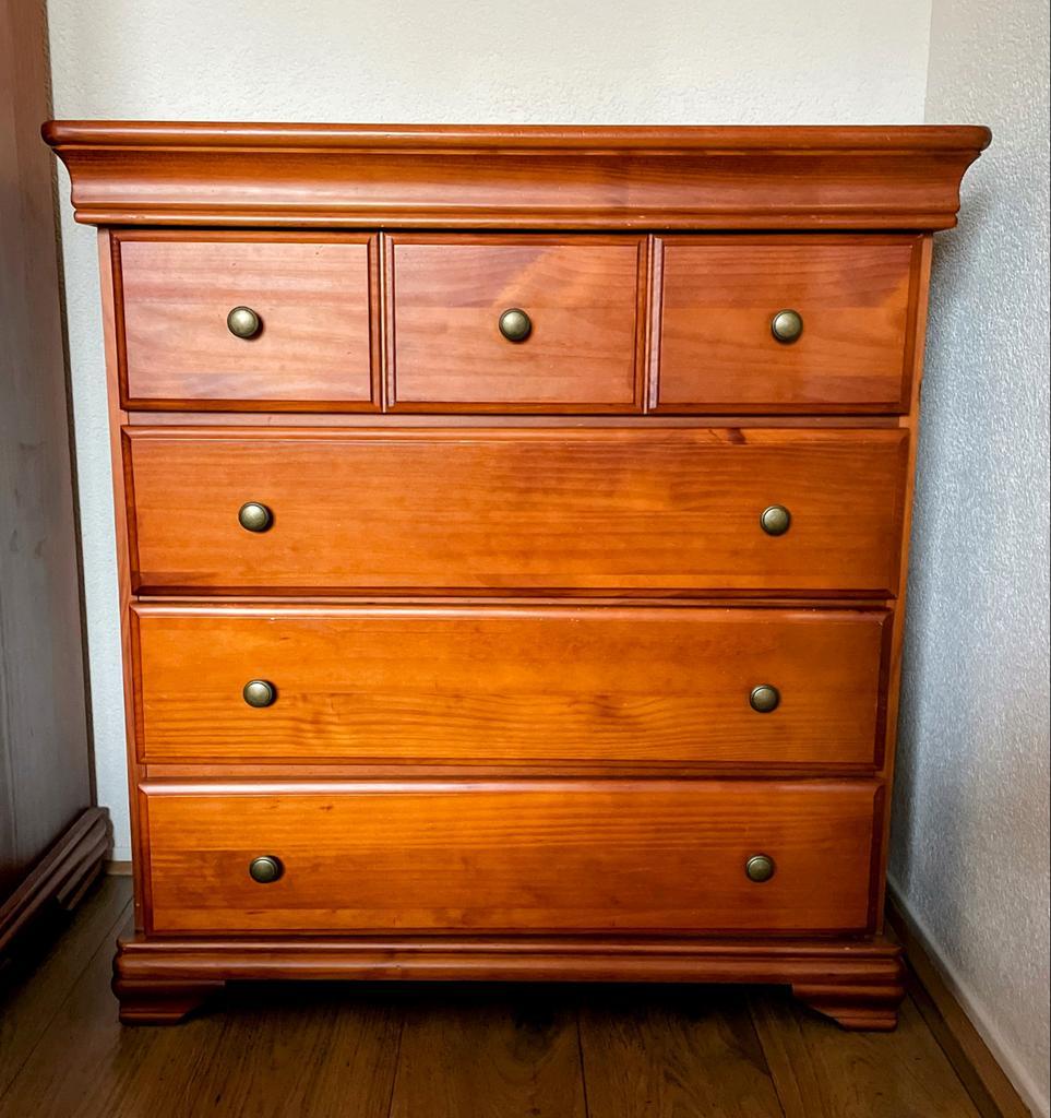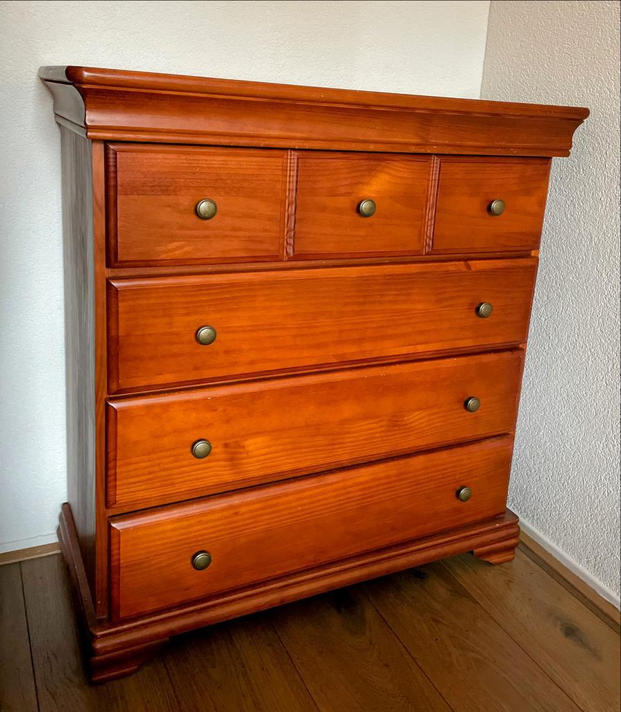 Complete slaapkamer set van massief hout, in goede staat. Wordt alleen als geheel aangeboden – niet los. Set bestaat uit: – tweepe