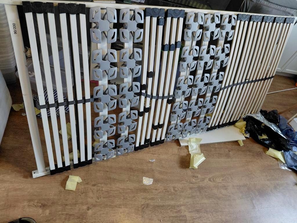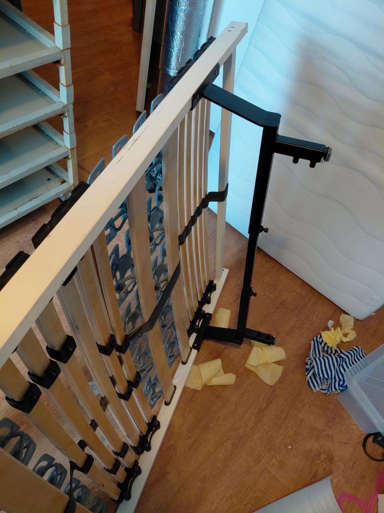 Goede lattenbodem waar al poten onder zitten. Matras mag ook mee. Is van de logeerkamer die heel weinig gebruikt is. Matras is zo