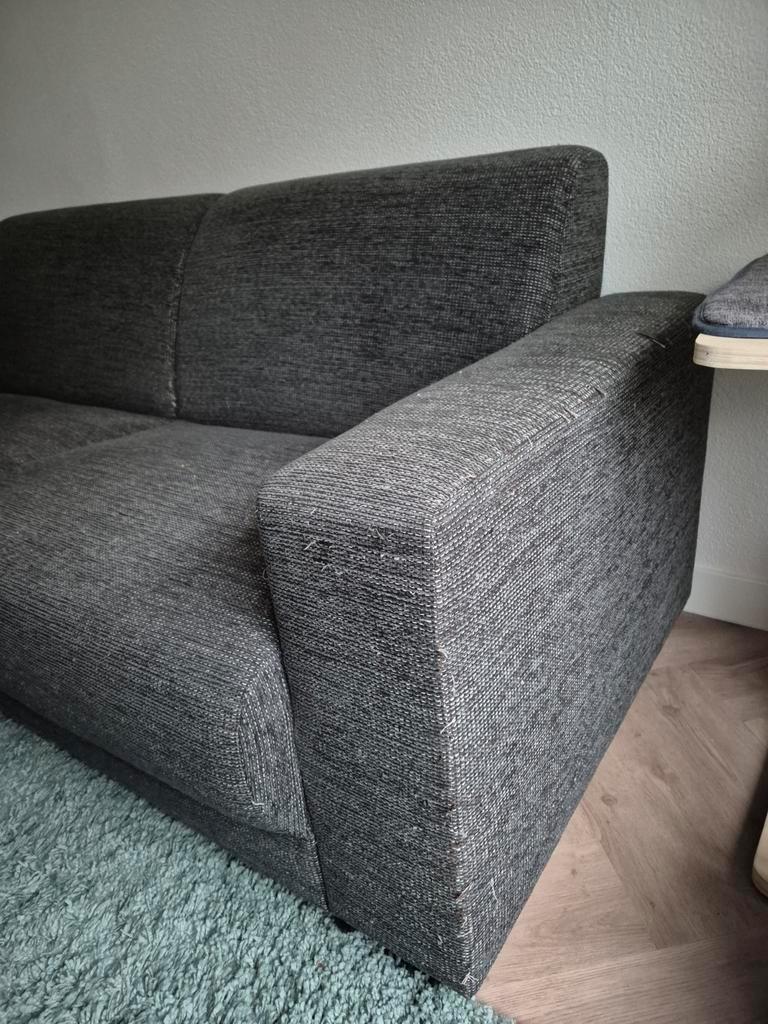 Ruime en stevige 2.5 Zits bank. (Kan met gemak 3 mensen op) ruime en stevige stoel kleur grijs/bruin gemêleerd mag weg vanwege nie