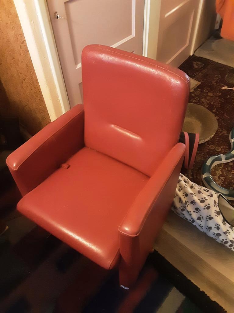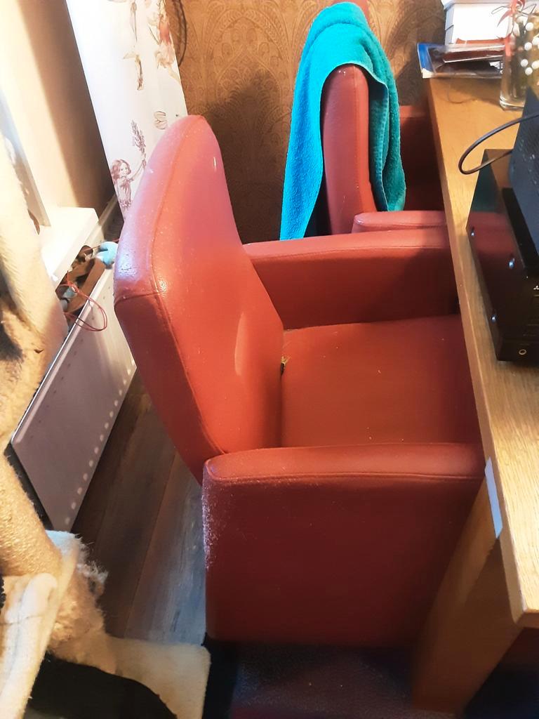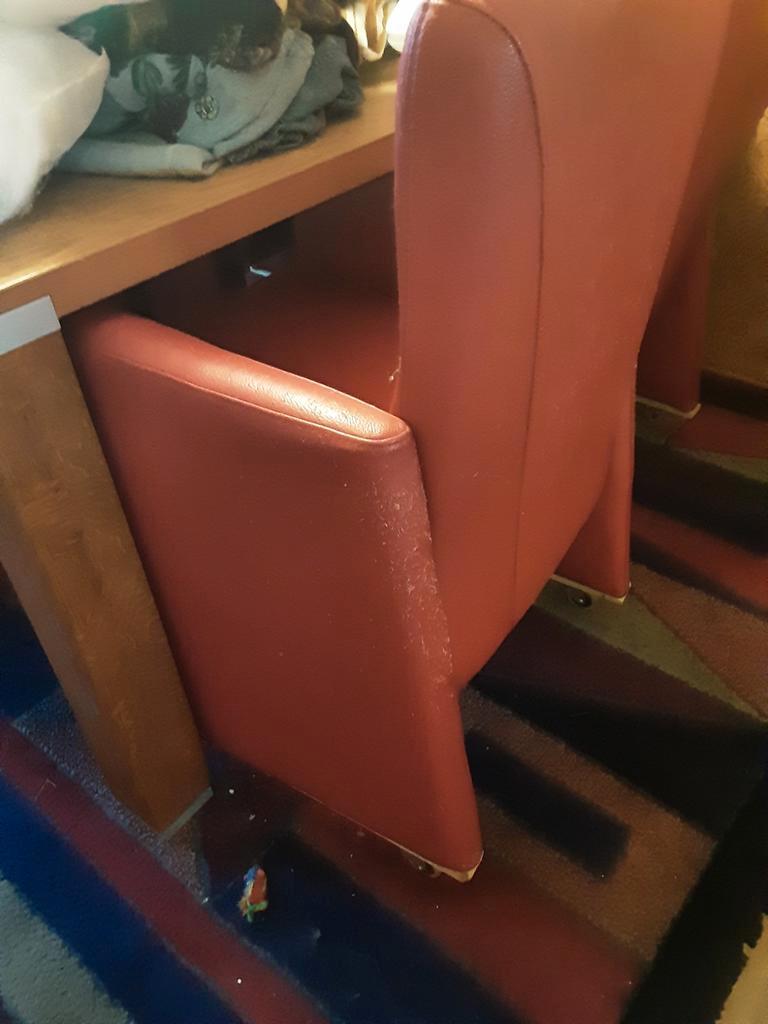 Eetkamerstoelen,leer, met verstelbare leuning.gratis ophalen. Beschadigd door onze tijgers.