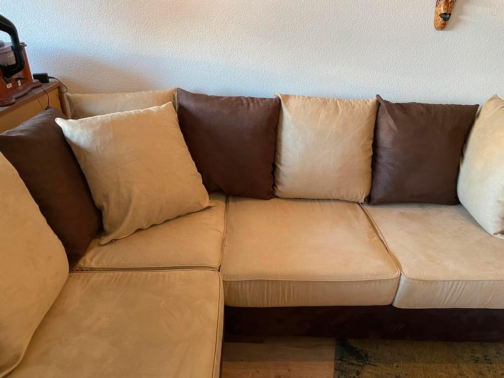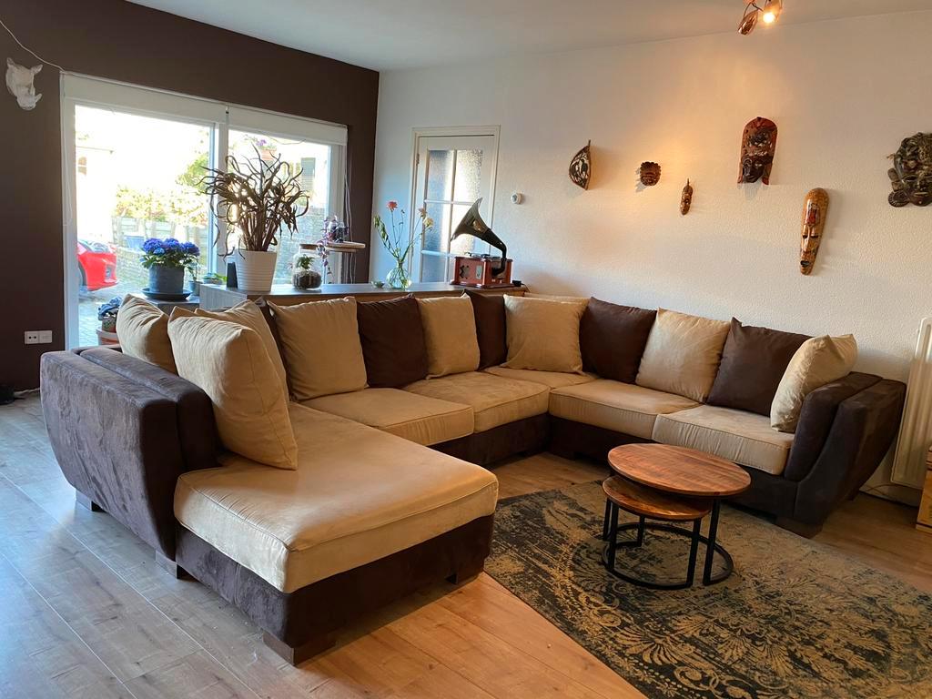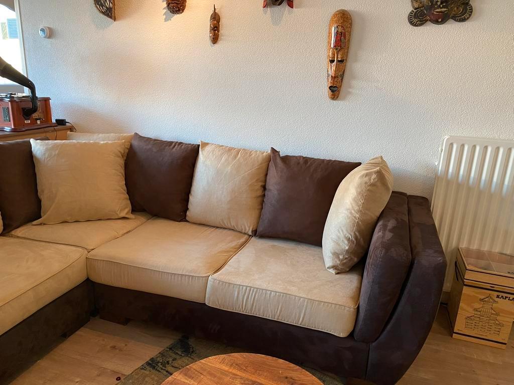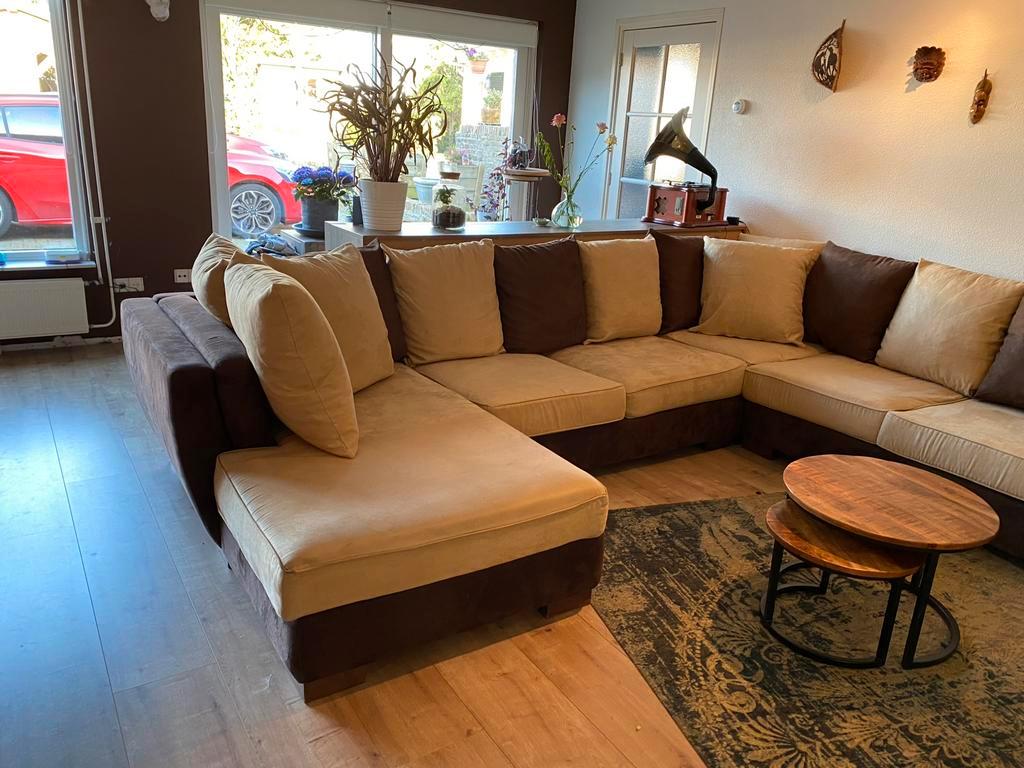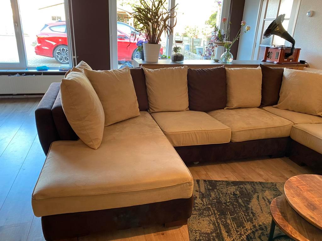 Zsm ophalen! Ben je op zoek naar een ruime, gezellige hoekbank? Deze stijlvolle bank in twee tinten (zand en chocoladebruin) biedt