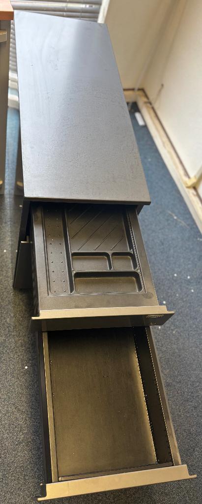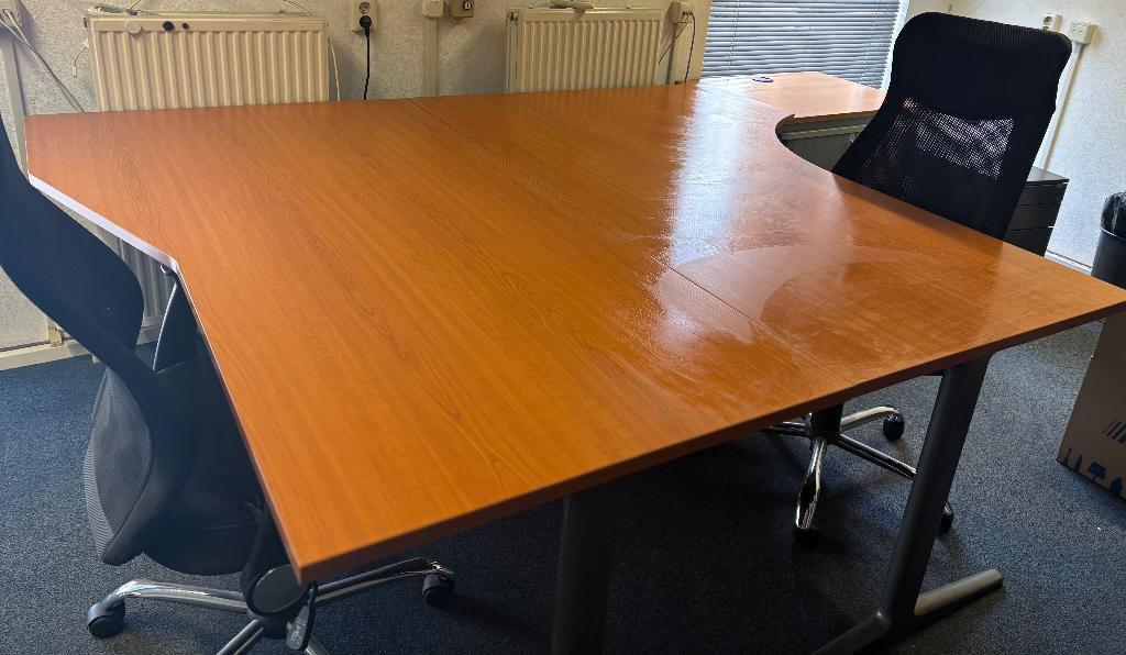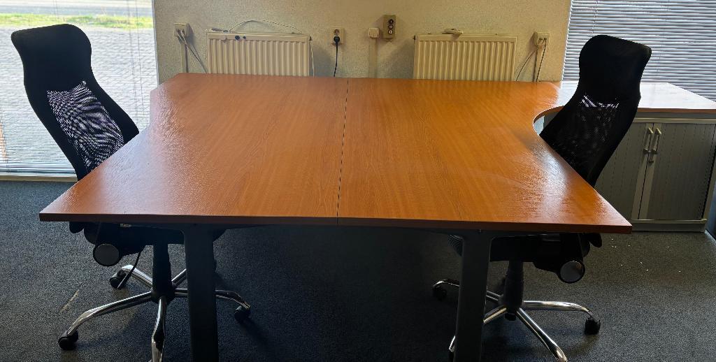 2 x bureau 1.80 Breed 0.80 Diep uitlopend naar 1.20 Diep 0.75 Hoog 1.80 Breed 0.80 Diep uitlopend naar 1.00 Diep 0.75 Hoog 1 x kas