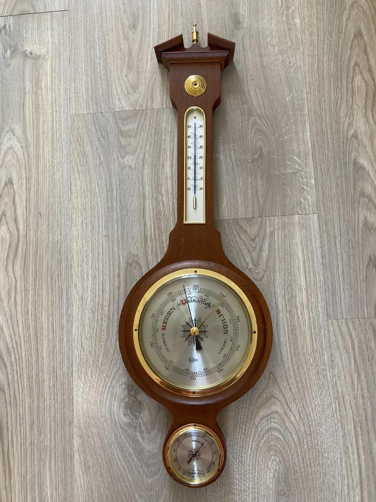 Vintage weerstation met duitse tekst - uitstekende staat - thermometer, barometer en hygrometer - 70,5 cm lang - 22,5 cm breed