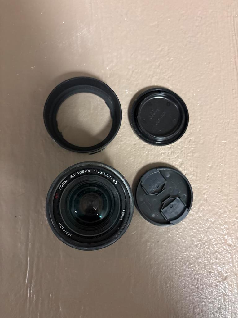Minolta zoomlens, 35-105mm. Geschikt voor diverse minolta camera''s. Inclusief lensdoppen en zonnekap. Zie foto''s voor de s