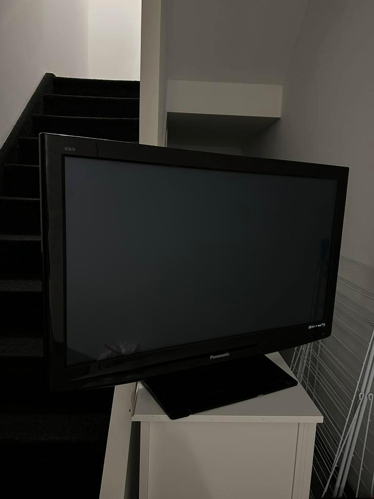 Alleen een scheur in het kunststof van de tv standaard maar de tv doet het nog goed.