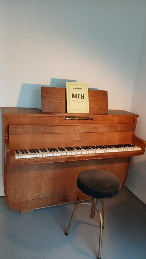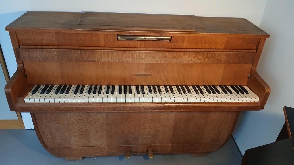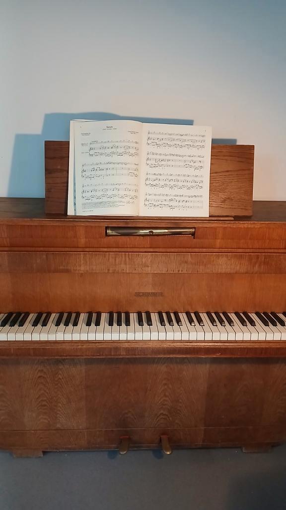 Gratis! Een prima piano van het goede duitse merk schimmel. Afmetingen: 99 cm hoog, 137 cm lang, 50 cm diep (op het diepste deel b