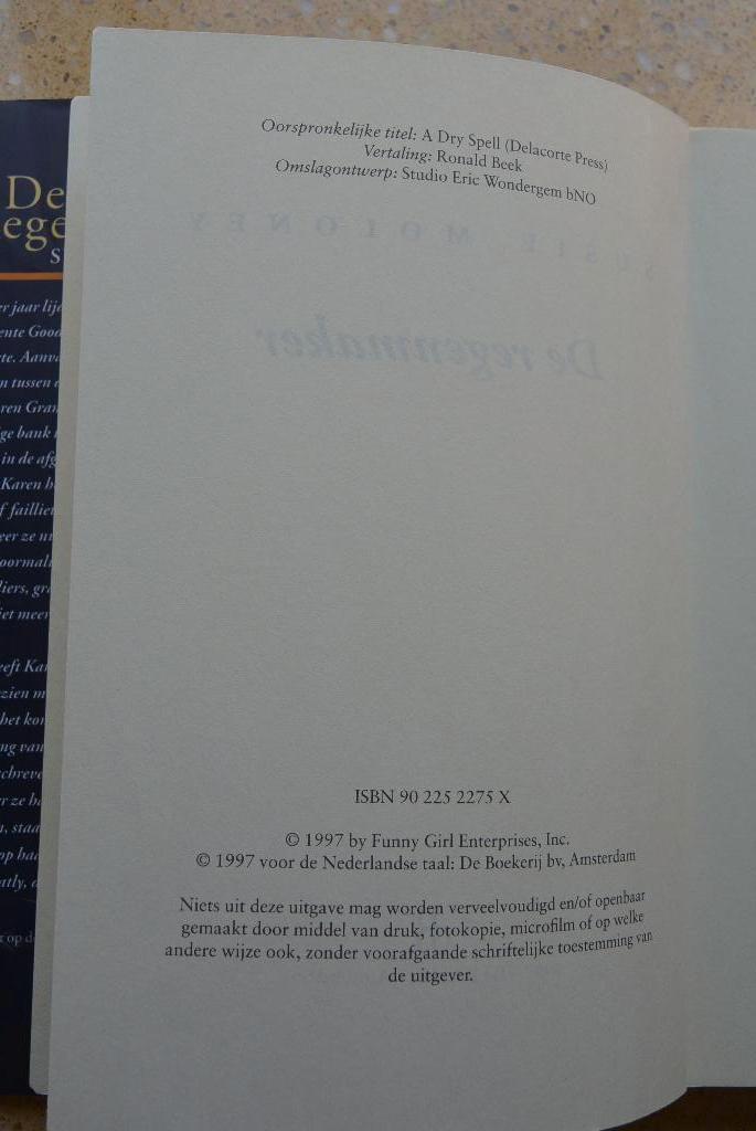 De regenmaker door: susie moloney vertaald uit het engels, canada de boekerij isbn 9789022522752 in goede staat, lichte lezersspor