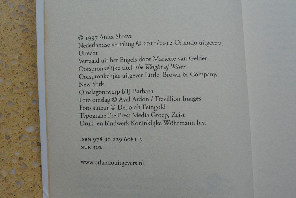 Het gewicht van water door: anita shreve vertaald uit het engels, usa orlando uitgevers isbn 9789022960813 in behoorlijke staat, l