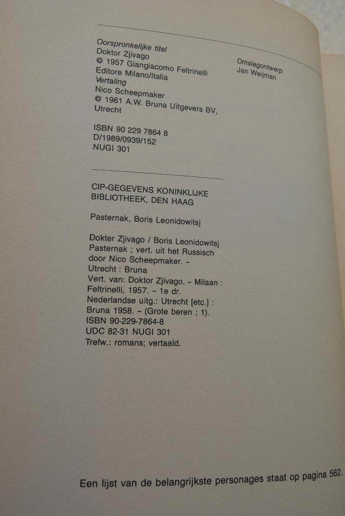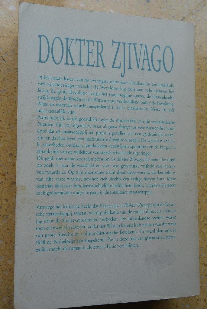 Dokter zjivago door: boris paternak vertaald uit het russisch, rusland a.w. Bruna isbn 9022978648 vlekken op de kaft en er staat e