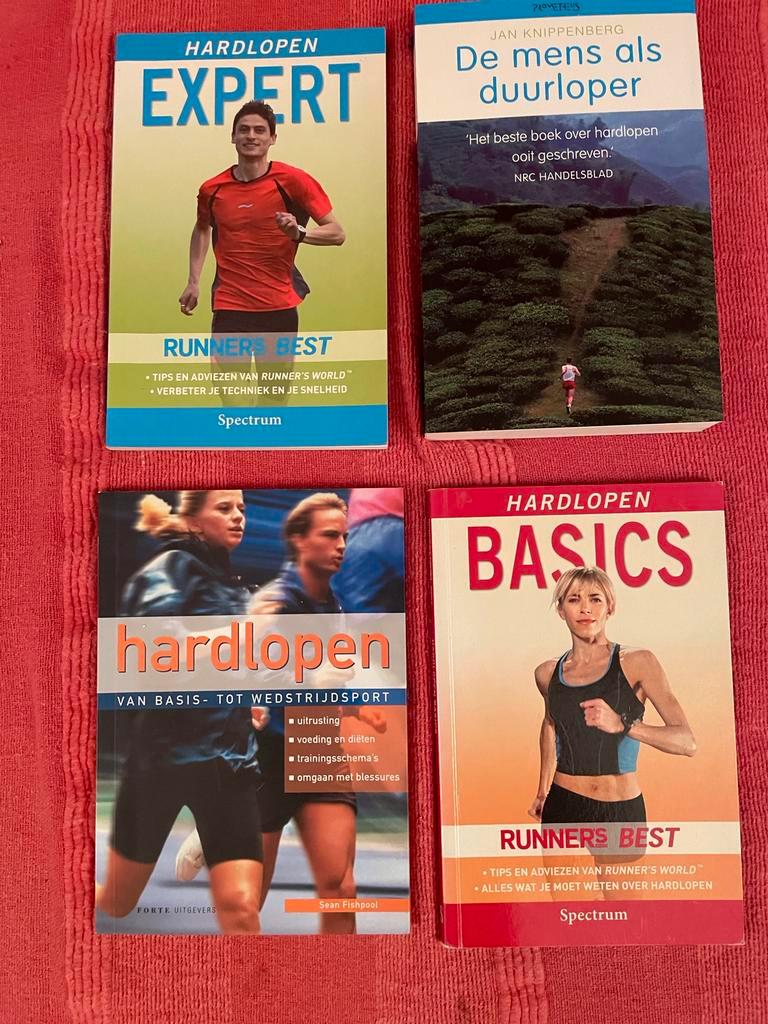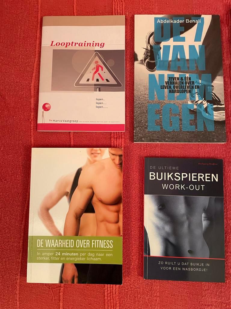 Een verzameling boeken over hardlopen en fitness. Bevat boeken over marathontraining, looptechniek, buikspiertraining en algemene
