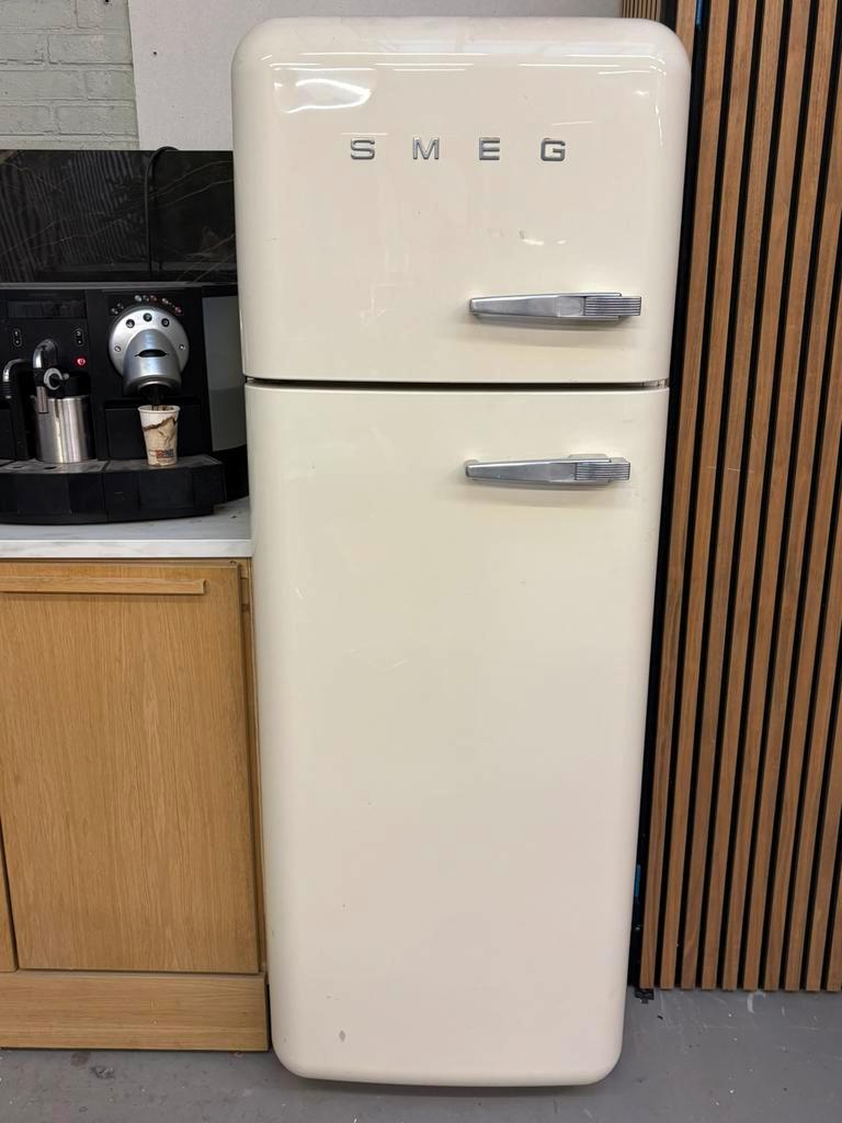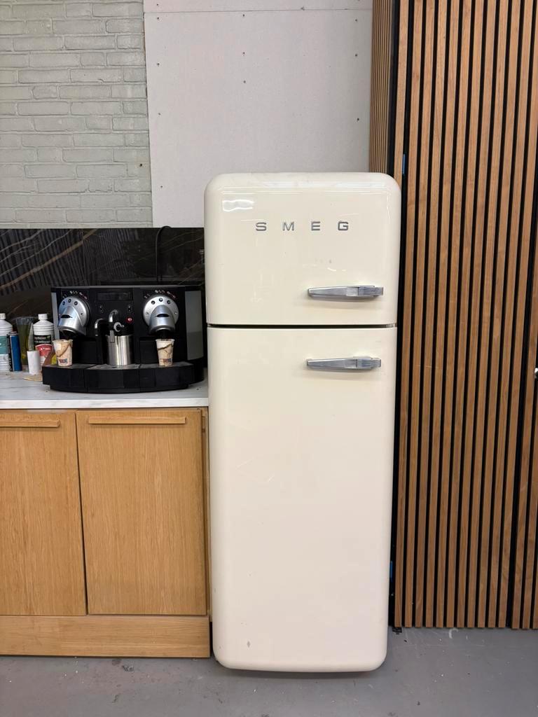 Smeg koelkast. Werkt niet meer, wellicht wel te maken? Is nu gebruikt als tijdelijke opslag van materialen. Gratis af te halen voo