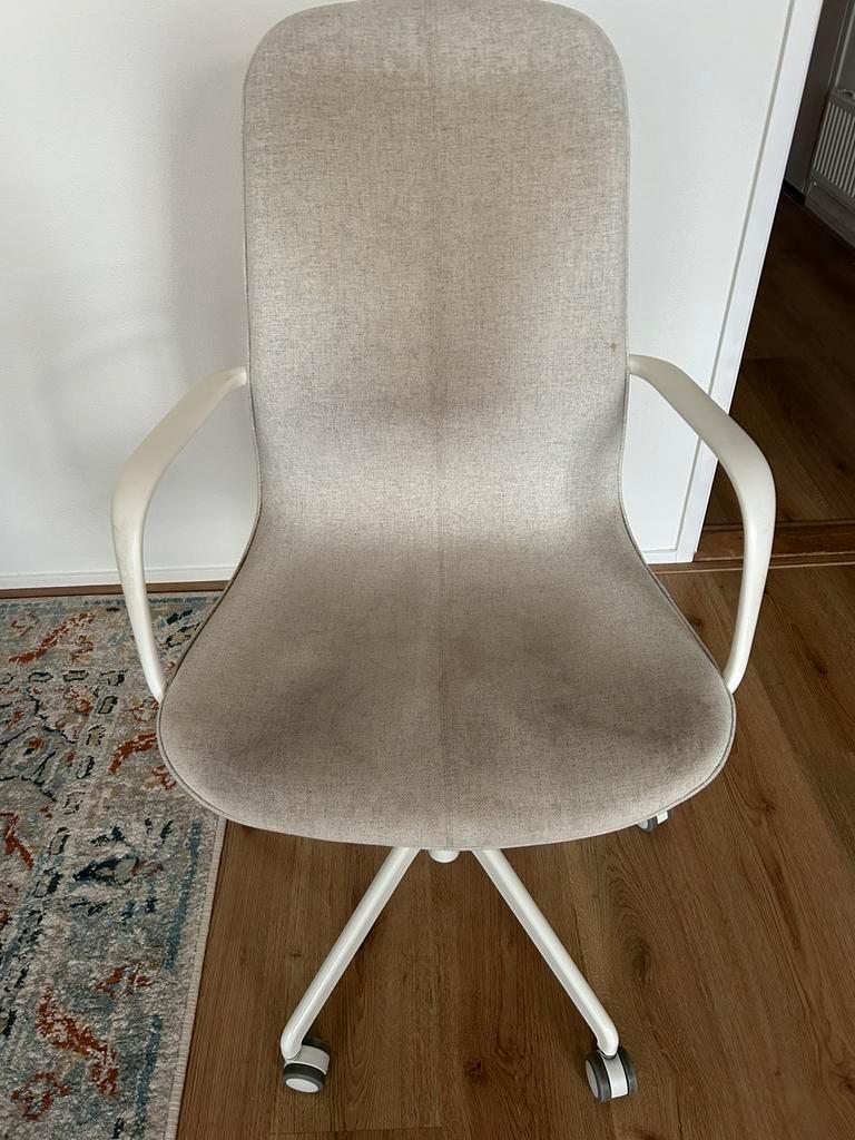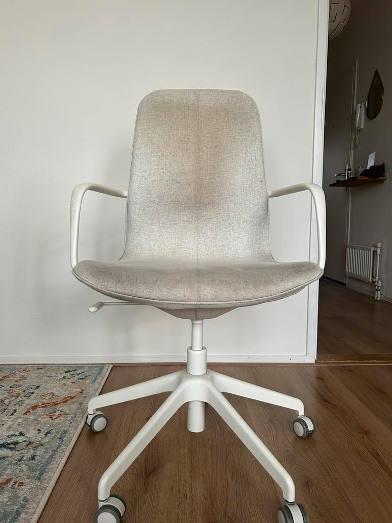 Långfjäll van ikea. De stoel werkt nog goed en zit lekker. Er zijn wel duidelijke gebruikssporen/verkleuring in de bekleding. Grat