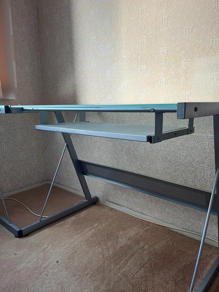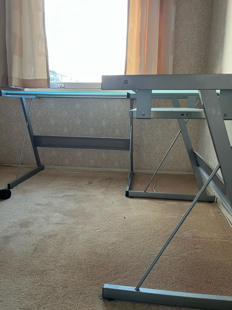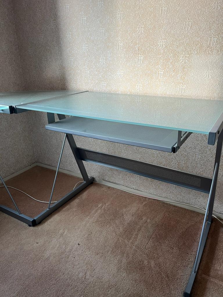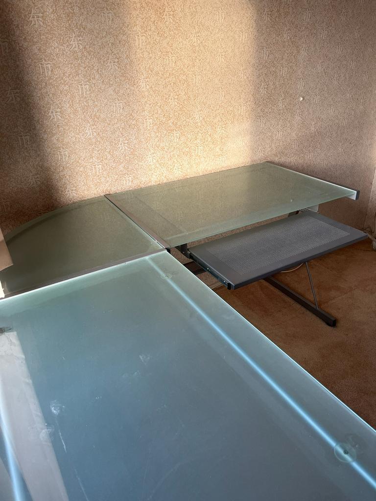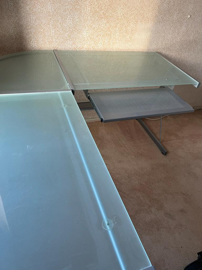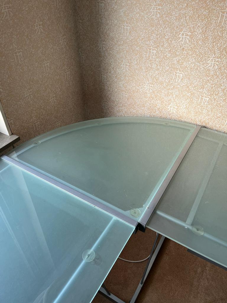 Gratis afhalen glazen hoekbureau in goede staat met toetsenbordlade 155 x 155 cm / diep 61 cm zelf demonteren bij afhalen delft